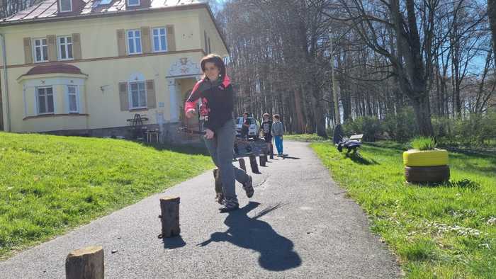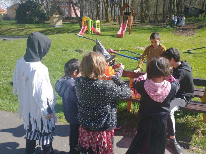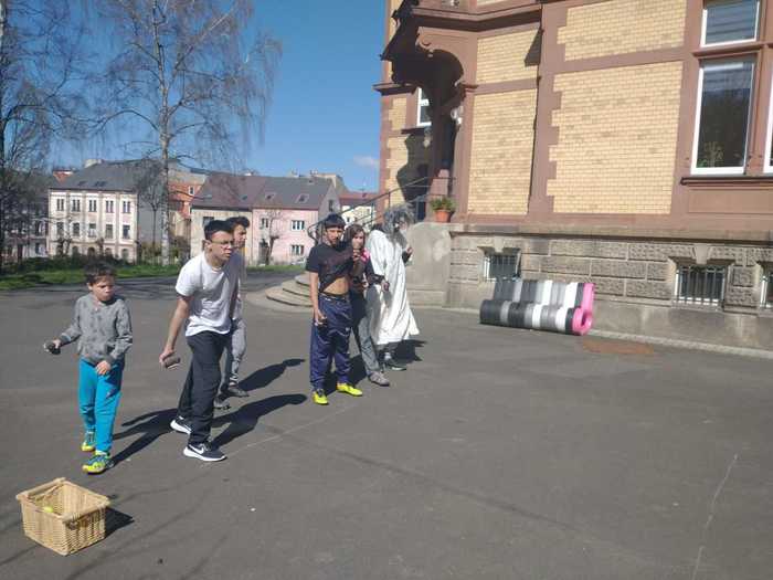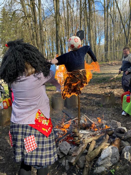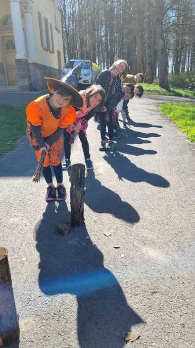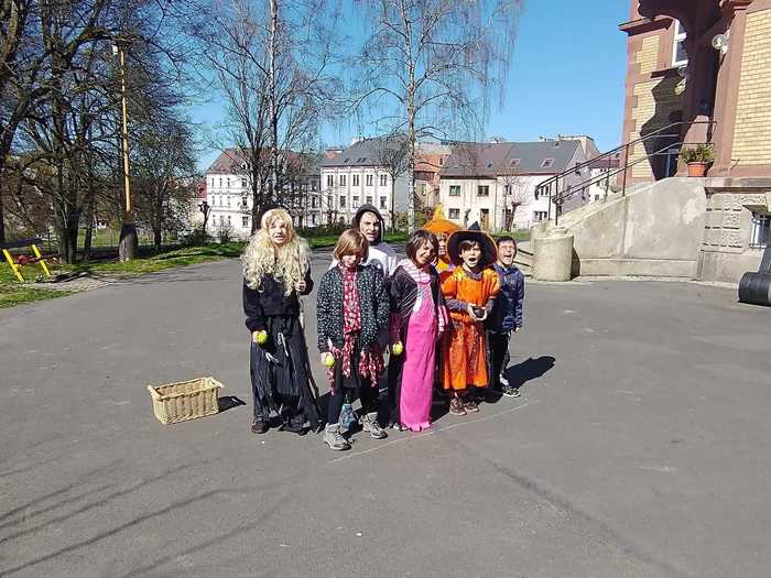 Přišlo magické datum 30.4. a s ním každoročně očekávané "Pálení čarodějnic". K nám přiletěla Mišelína Krákavá a s ní několik dalších malých čarodějnic :-). Ještě než došlo ke spálení čarodějnice a opékání oblíbených vuřtů, vyzkoušela si děti "Mišelína" ze znalosti zaklínadel a pak je čekalo několik "náročných" úkolů. Absolvovaly slalom s koštětem, běh v čarobotách, prolézání pavučinou, hod do čarokotle a "chytání pavouků". Přálo nám i počasí a tak máme za sebou další krásný den :-)