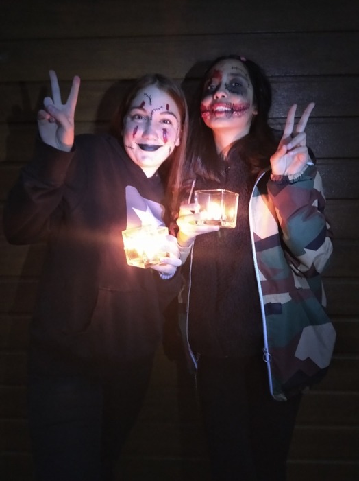 Halloweenský den byl původně plánován v poklidu u pohádky s malým občerstvením. Iniciativu oslavy převzaly starší děti a připravily pro ty menší krásný zážitek v podobě strašidelné stezky. Stezka byla tajemná a plná překvapení, se spoustou krásných svítících dekorací, které vyrobil sám Daniel z 5.sk. Zpočátku se děti bály, ale jen do chvíle, kdy poznaly své kamarády. Večer končil rozdáním sladkostí a zahradní diskotékou, kterou si všichni pěkně užili. Děkujeme starším dětem za příjemný strašidelný podvečer a za to, že i v této náročné době dokážou potěšit a držet spolu.