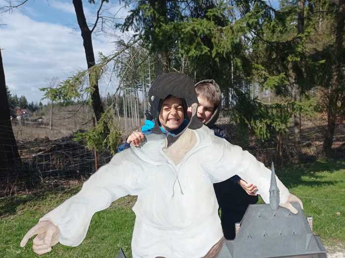 Velikonoce a svátky mají naše děti opravdu pestré. Seznamují se s tradicemi, navštěvují velikonoční dílničky, zdobí si byty vlastními výtvory a pokud počasí trochu dovolí utíkají do přírody, která je v našem okolí opravdu krásná. Děti se strejdou Frantou a tetou Ivčou vyšli do okolí vrchu Háj, kde děti plnily úkoly a kvízy, které si pro ně vychovatelé připravili. Současně nechali v nohách téměř 12km. Další výšlap si připravil strejda Tomáš s tetami Luckou a Andreou. Tentokrát se vydali na druhou stranu na Goethovy skalky. Nohy všechny moc bolely, protože si šláply skoro 15km, ale odměnou jim bylo parádní počasí a krásný výhled na skalce. Posledním velikonoční výlet byl už spíše odpočinkový, protože děti se strejdou Honzou vyjely do Mariánských Lázní a navštívíly zde park Boheminium.